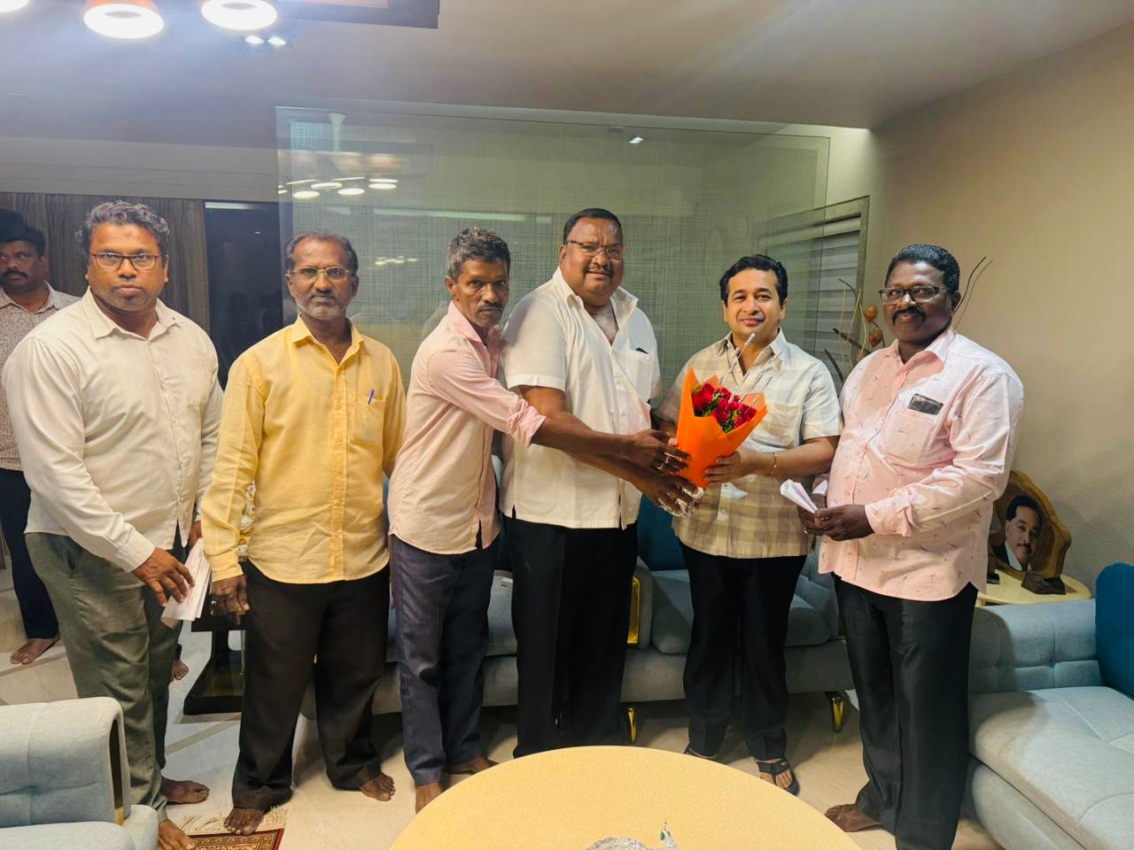 मच्छिमारी व्यवसायाला राज्य शासनाने कृषी दर्जा दिल्यामुळे शेतकऱ्यांना मिळणाऱ्या विविध योजना, सवलती व कर्जमाफीचा लाभ मच्छिमारांनाही देण्यात यावा, तसेच देवगड फिशरमेन्स को-ऑप. सोसायटीच्या बर्फ कारखान्यावरील कर्जाच्या व्याजात भरीव सवलत देण्यात यावी, या मागणीसाठी देवगड येथील मच्छिमारांनी पालकमंत्री मा. नितेश राणे यांची भेट घेऊन निवेदन सादर केले.