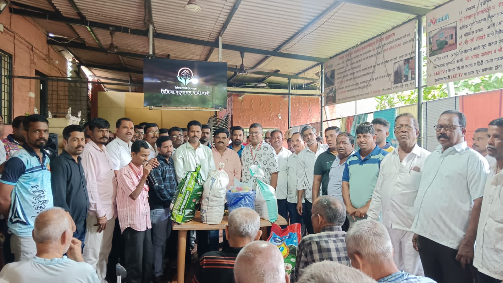 चेअरमन भगवान लोके यांच्या वाढदिवसानिमित्त दिविजा वृध्दाश्रमाला जीवनावश्यक वस्तुंची भेट ; ग्रामस्थांची उपस्थिती पाहून भगवान लोके यांची लोकप्रियता दिसून येते