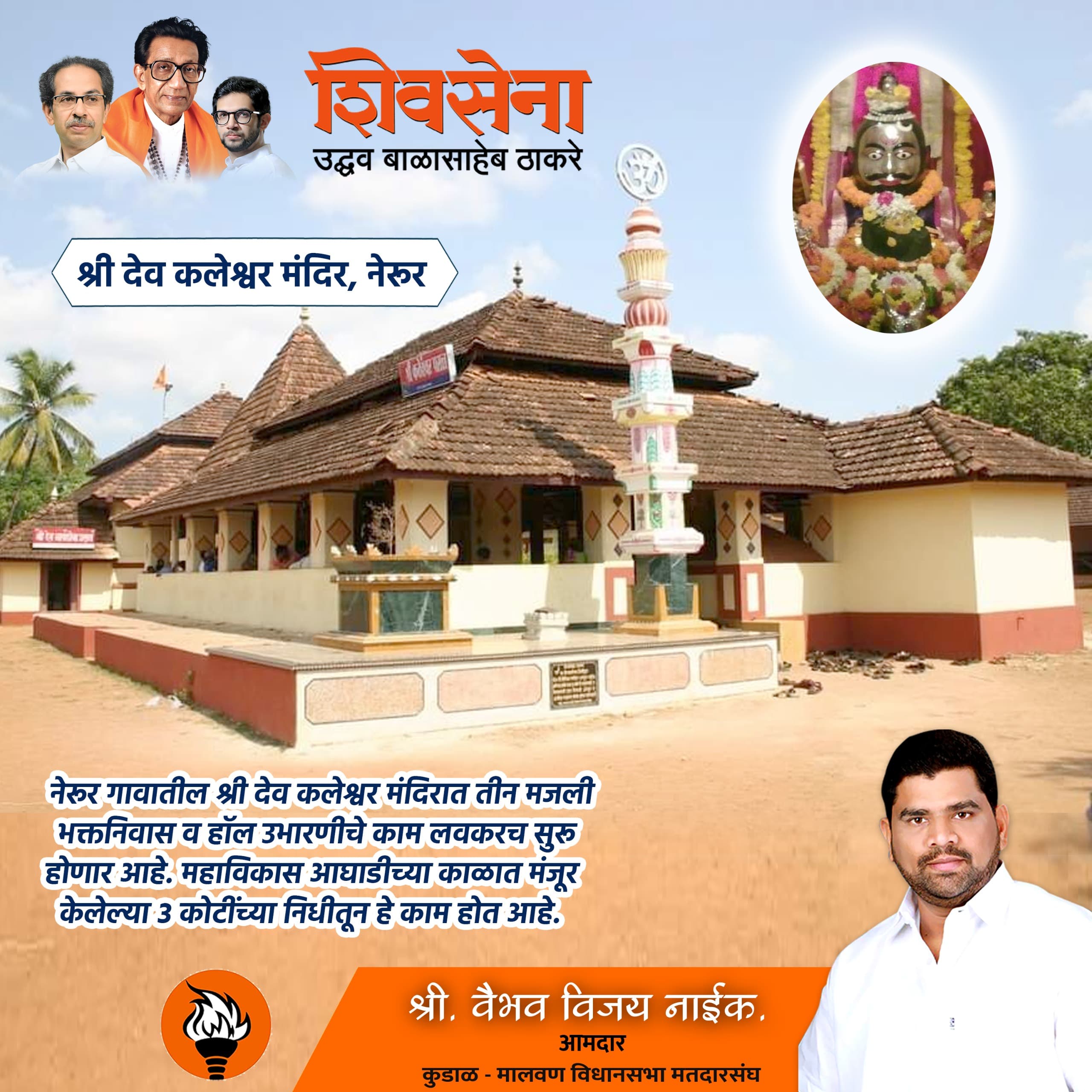 आमदार वैभव नाईक यांच्या माध्यमातून नेरूर येथील श्री कलेश्वर मंदिरासाठी तीन मजली भक्तनिवास आणि हॉलची होणार उभारणी