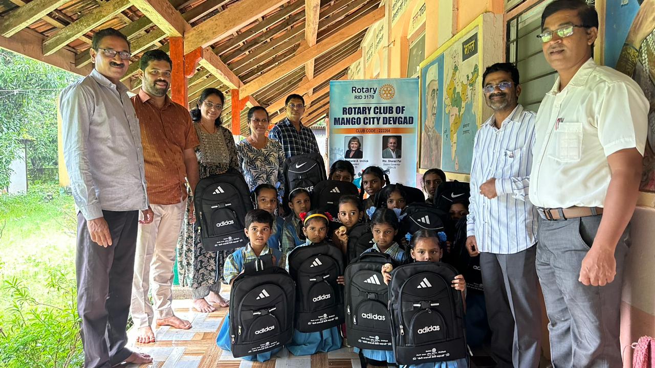 रोटरी क्लब ऑफ मँगो सिटी देवगड च्या वतीने गरजू विद्यार्थ्यानीना दप्तर वाटप