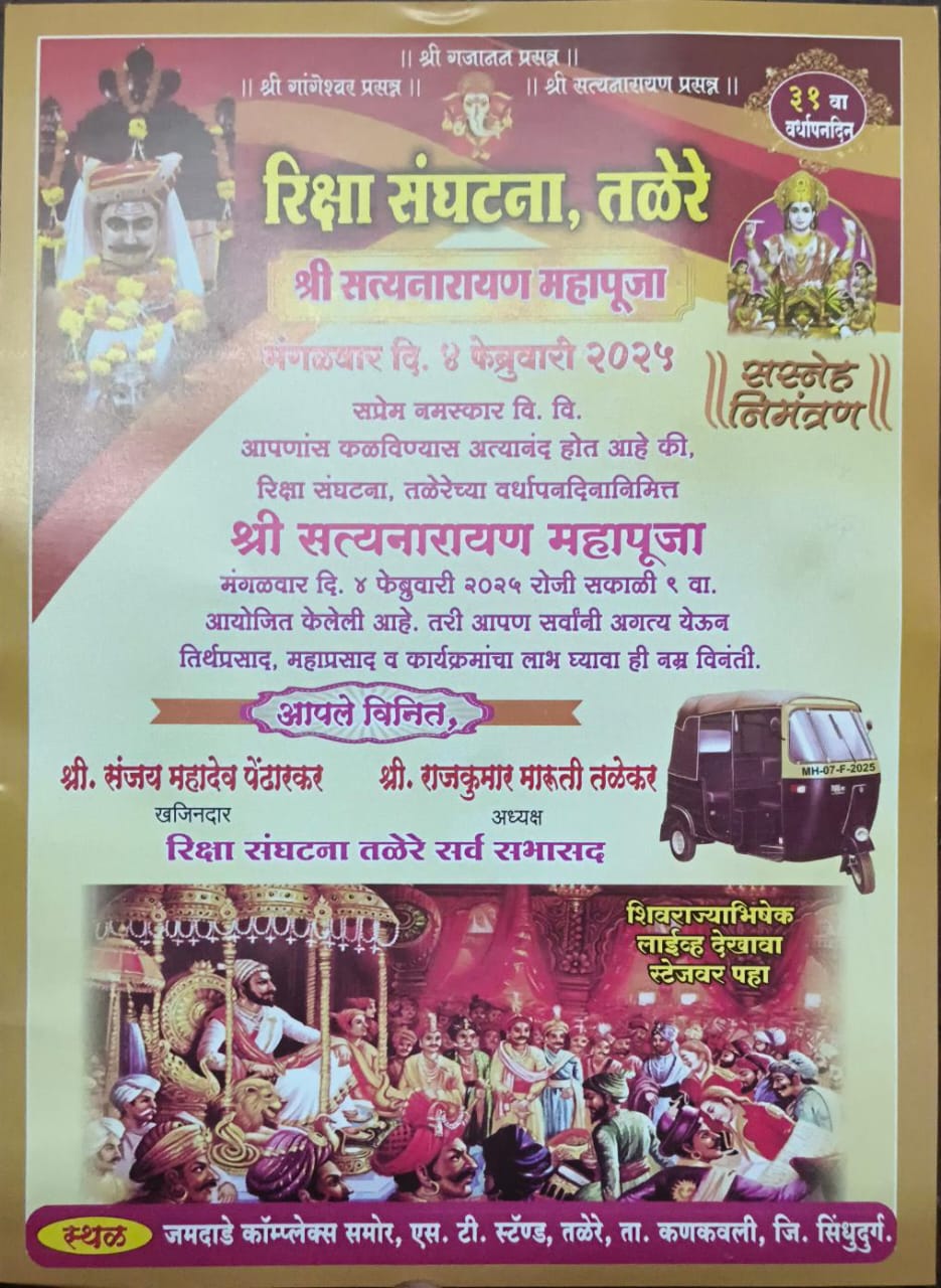 रिक्षा संघटना तळेरेचा ३१ सावा वर्धापन दिन ४ फेब्रुवारी रोजी :- विविध भरगच्च कार्यक्रमांचे आयोजन