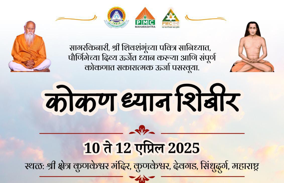 यांच्यावतीने १० ते १२ एप्रिल २०२५ या कालावधीत श्री क्षेत्र कुणकेश्वर येथे कोकण ध्यान शिबिराचे आयोजन करण्यात आले आहे.