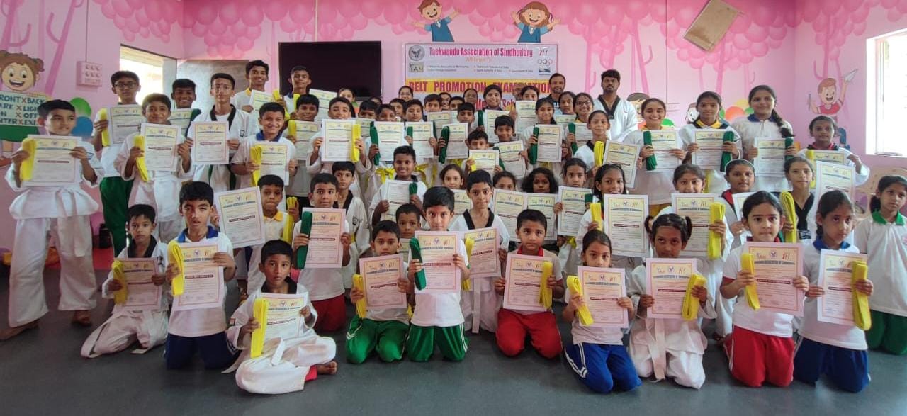 तायक्वांदो असोसिएशन ऑफ सिंधुदुर्ग आणि नॅशनल इंग्लिश मेडिअम स्कूल नडगिवे यांच्या संयुक्त विद्यमानाने घेण्यात आलेल्या तायक्वांदो बेल्ट प्रमोशन टेस्ट मध्ये नडगिवे येथील आदर्श एज्युकेशन सोसायटी संचलित नॅशनल इंग्लिश मेडिअम स्कूल नडगिवे च्या विद्यार्थ्यांनी घवघवीत यश मिळवले आहे. ही बेल्ट परीक्षा राष्ट्रीय पंच व प्रशिक्षक भालचंद्र कुलकर्णी यांच्या मार्गदर्शनाखाली घेण्यात आली यावेळी सोनिया ढेकणे व दुर्वा गावडे ह्या उपस्थित होत्या. यशस्वी विद्यार्थ्यांचे प्रशालेच्या मुख्याध्यपिका सौ. निलम डांगे तसेच सहाय्यक शिक्षिका सौ. जान्हवी हर्डीकर, सौ. सिद्धी जोशी, सहाय्यक शिक्षक श्री. अमोल चौगुले यांच्या हस्ते बेल्ट व प्रमाणपत्र देऊन गौरवण्यात आले यशस्वी विद्यार्थ्यांची नावे पुढीलप्रमाणे आहेत.