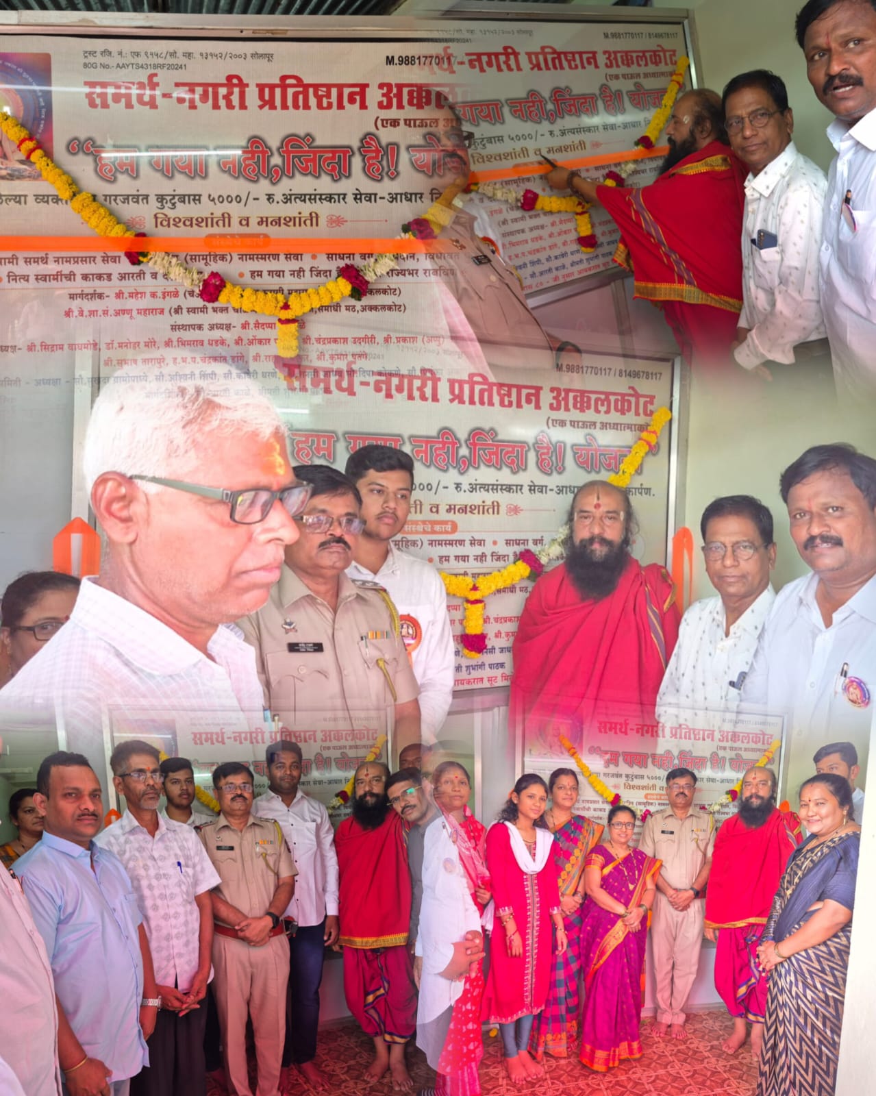 अक्कलकोट निवासी श्री स्वामी समर्थ महाराज यांच्या १४७ साव्या पुण्यतिथीचे औचित्य साधून समर्थ नगरी प्रतिष्ठान अक्कलकोटच्या माध्यमातून मयत झालेल्या व्यक्तीच्या गरजवंत कुटुंबास अंत्यसंस्कार तथा आधार देण्याच्या संकल्पनेतून अक्कलकोटसह राज्यभरामध्ये ही योजना राबविण्याचे नियोजन करण्यात आले आहे.