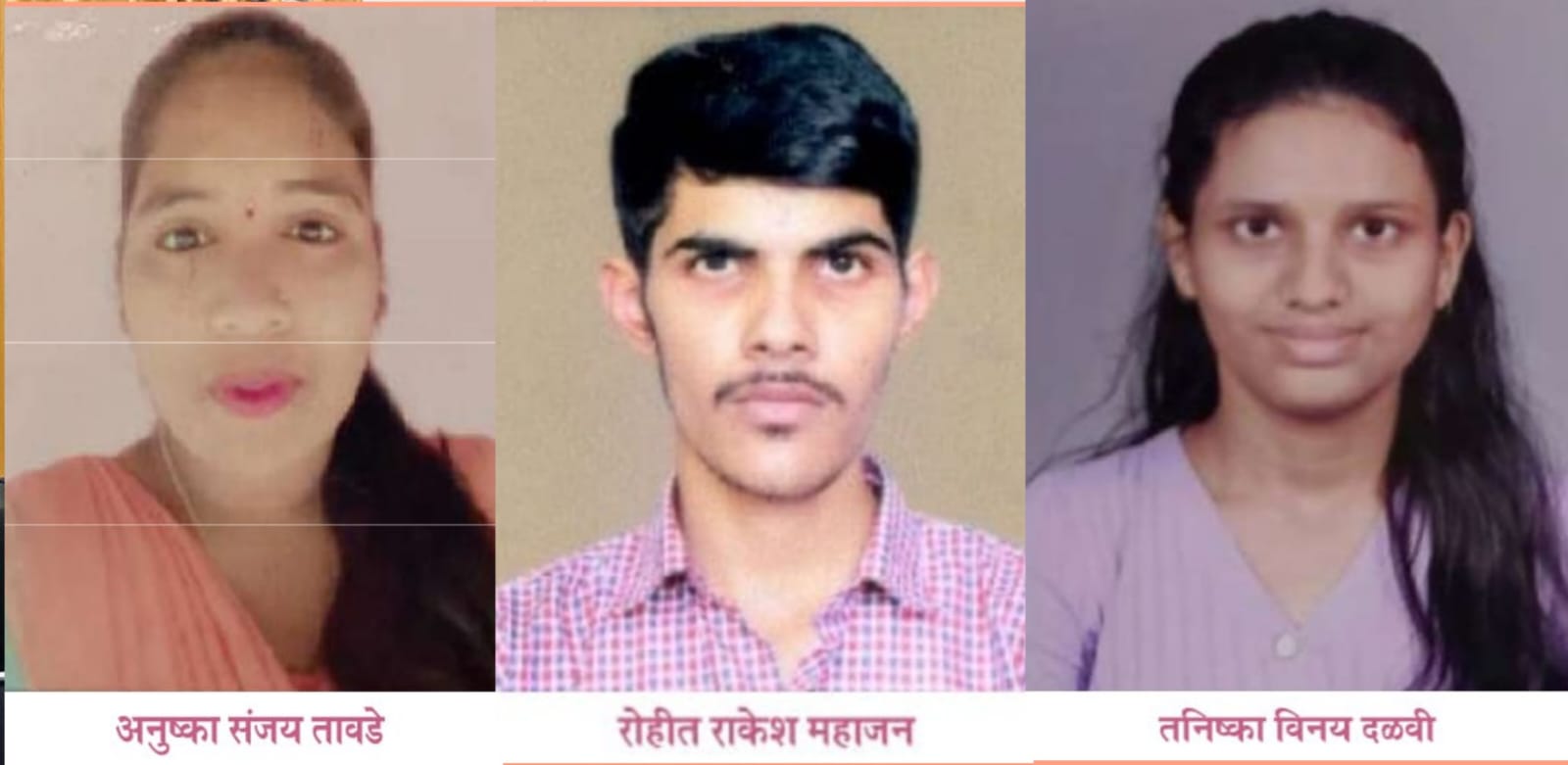 प्रथम प्रगती शैलेश टूकरुल(७२.६७), द्वितीय तृप्ती भिकाजी नरसाळे(७१.३३), तृतीय स्वरांगी सुभाष मोंडे(७१)