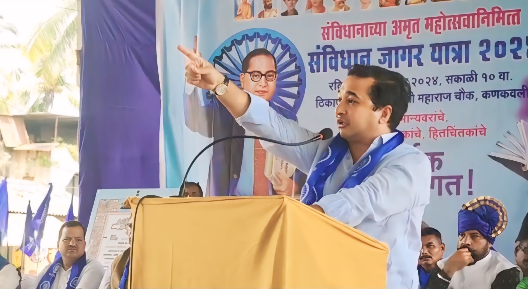 संविधान जागर यात्रेच्या कणकवली येथल छत्रपती शिवाजी महाराज चौक येथील जाहीर सभेत आमदार नितेश राणे बोलत होते. यावेळी ऍड. वाल्मिक निकाळजे, नितीन मोरे, राजेंद्र गायकवाड, श्रीमती ठोकळे, श्रीमती भालेकर, आकाश आंभोरे, नामदेव जाधव, अंकुश जाधव, अजित कदम, सुशील कदम आदी यावेळी व्यासपीठावर उपस्थित होते.