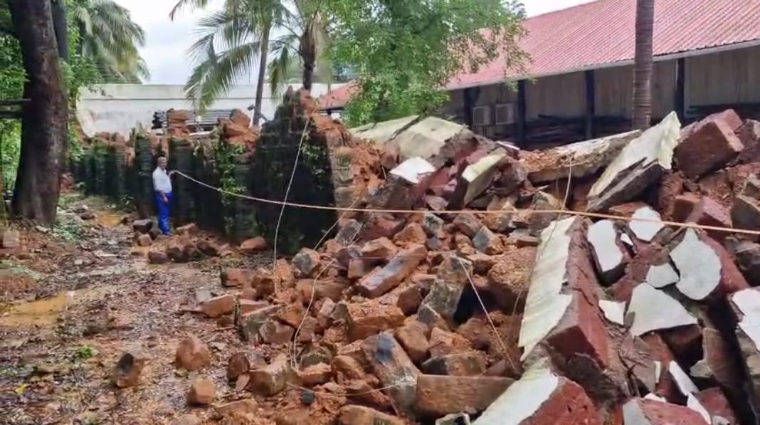 सावंतवाडी संस्थानकालीन जिल्हा कारागृहाची सुमारे १४३ वर्षांपूर्वीची १८८२ मध्ये काळा दगड आणि मातीपासून बांधलेली संरक्षक भिंत कोसळली