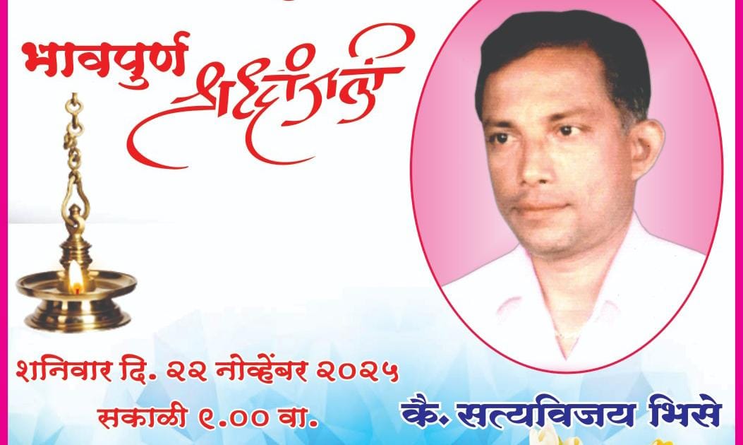 सामाजिक कार्यकर्ते कै. सत्यविजय भिसे यांचा २३ वा. स्मृतिदिन शनिवार दि. २२ नोव्हेंबर रोजी शिवडाव येथे कै. सत्यविजय भिसे मित्रमंडळ (शिवडाव) यांच्यावतीने साजरा करण्यात येणार आहे.