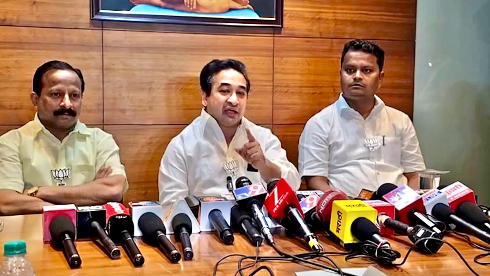 मतदान व्हायला काही तास शिल्लक असताना कणकवलीत भाजपचे मंत्री नितेश राणे यांनी पुन्हा मोठा राजकीय बॉम्बस्फोट केला आहे. प्रहार भावन येथे पत्रकार परिषद घेतली यावेळी भाजपचे नगराध्यक्ष पदाचे उमेदवार समीर नलावडे कणकवली भाजपा तालुका अध्यक्ष मिलिंद मेस्त्री उपस्थित होते. मंत्री नितेश राणे म्हणाले,संदेश पारकर यांना भाजपमध्ये घ्यायला आमचे नेते खासदार नारायण राणेंनी स्पष्ट शब्दात नकार दिला. चपट्या पायाच्या लोकांना पक्षात घेऊ नका असा आदेश दिला. जर तीस कोटी रुपये आणि नगराध्यक्षपदाची उमेदवारी संदेश पारकर यांना दिले असती तर नितेश राणे रवींद्र चव्हाण हे आम्ही लोक यांच्यासाठी चांगले झाले असतो. भय आणि भ्रष्टाचार मुद्द्यांचा नामशेष झाला असता. भाजप पक्ष किती चांगला आहे हे या लोकांनी ओढून सांगितले असते मात्र मला माझ्यासोबत काम करणाऱ्या कार्यकर्त्याला न्याय द्यायचा आहे ज्या काळात राणे कुटुंबियांचा पडता काळ होता त्यावेळी ज्या लोकांनी आमच्या समवेत काम केले कोणत्याही फळाची अपेक्षा न ठेवता आम्हाला साथ दिली अशा सर्व कार्यकर्त्यांना न्याय द्यायचा होता समीर नलावडे यांच्यासारख्या निष्ठावंत कार्यकर्त्याला उमेदवारी देऊन कणकवलीत पुन्हा एकदा दुसऱ्या टप्प्यातील विकास पर्व पुढे घेऊन जायचे आहे आणि म्हणूनच संदेश पारकर ला ठोकर मारून आम्ही समीर नलावडे यांना उमेदवारी दिली आणि त्यांना विजयी करण्यासाठी कणकवलीकर जनता आमच्या सोबत सज्ज आहे.उद्या 2 डिसेंबर रोजी सकाळी कणकवलीकर जनता मतपेटीतून भारतीय जनता पार्टी साठी कमळ या निशाणी वरील बटन दाबून मतदान करतील असा विश्वासही यावेळी मंत्री नितेश राणे यांनी व्यक्त केला.