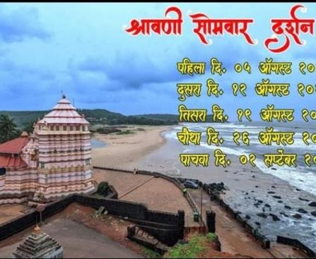 देवगड (स्वप्नील लोके)२ ऑगस्ट २०२४ तब्बल ७१ वर्षानंतर श्रावण सोमवारीचं श्रावण मासाची सुरुवात ; १८ वर्षानंतर जुळून आला पाच सोमवारचा दुग्धशर्करा योग आमदार नितेश राणे यांच्या हस्ते होणार ५ ऑगस्ट रोजी पहाटे ५ वाजता पहिली पूजा ५,१२,१९,२६ ऑगस्ट व १ सप्टेंबर या पाच श्रावण सोमवारसाठी श्री क्षेत्र कुणकेश्वर भाविकांच्या स्वागतासाठी सज्ज […]