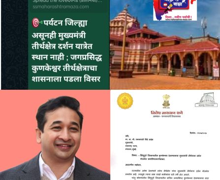 जगप्रसिद्ध कुणकेश्वर देवस्थानचा मुख्यमंत्री तीर्थयात्रा दर्शन योजनेत समाविष्ट करा आमदार नितेश राणे मुख्यमंत्री एकनाथ शिंदे यांना केली पत्राद्वारे विनंती देवगड (प्रतिनिधी)२० जुलै २०२४ महाराष्ट्र सरकारने मुख्यमंत्री तीर्थ दर्शन योजना सुरू केली असून या योजनेत देशातील एकूण १३९ धार्मिक स्थळांचा समावेश असून यामध्ये महाराष्ट्रातील ६६ तील धार्मिक स्थळांच्या समावेश आहे मात्र एकमेव पर्यटन […]