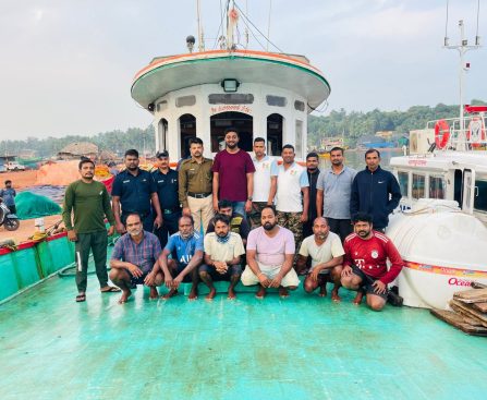 देवगड : प्रतिनिधी आचरा समुद्रात कर्नाटकातील मलपी येथील परप्रांतीय हायस्पीड नौकेला रंगेहाथ पकडले आचरा समुद्रात १७ वावांमध्ये महाराष्ट्र राज्याच्या सागरी हद्दीत बेकायदेशीरपणे मच्छीमारी करत असताना देवगड मत्स्यव्यवसाय विभागाच्या गस्ती नौकेने थरारक पाठलाग करून कर्नाटकातील मलपी येथील परप्रांतीय हायस्पीड नौकेला रंगेहाथ पकडले. ही कारवाई मंगळवारी पहाटे २.३० वाजण्याच्या सुमारास करण्यात आली. पकडलेली नौका देवगड बंदरात आणण्यात […]