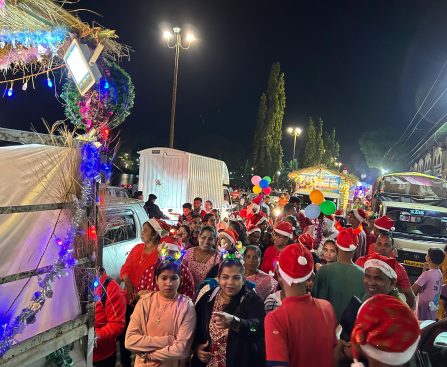 सावंतवाडी (हेमंत मराठे) ख्रिसमसच्या पार्श्वभूमीवर शहरात ख्रिस्ती बांधवांकडून काढण्यात आला भव्य फ्लोट नववर्ष २०२५ चे स्वागत आणि ख्रिसमसच्या पार्श्वभूमीवर शहरात ख्रिस्ती बांधवांकडून भव्य फ्लोट काढण्यात आली. सावंतवाडी कॅथोलिक असोसिएशनच्या माध्यमातून ही शोभायात्रा काढण्यात आली. या शोभायात्रेस शहरवासियांकडून मोठा प्रतिसाद मिळाला. येशूने दिलेला सामाजिक बांधिलकीचा संदेश या यात्रेतून […]
