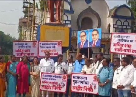 कणकवली (प्रतिनिधी) अमित शहा यांच्या वक्तव्याचा कणकवलीत ठाकरे शिवसेनेने केला निषेध केंद्रीय गृहमंत्री अमित शहा यांनी संसदेतच भारतीय राज्यघटनेचे शिल्पकार, भारतरत्न डॉ. बाबासाहेब आंबेडकर यांच्याबद्दल अनुद्गार काढून महामानवाचा अपमान केल्याच्या निषेधार्थ कणकवली येथील डॉ. बाबासाहेब आंबेडकर भवन येथे ठाकरे शिवसेनेकडून निदर्शने करण्यात आली. यावेळी डॉ. बाबासाहेब आंबेडकर यांचा विजय असो… राजीनामा द्या राजीनामा […]