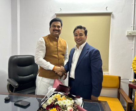 कॅबिनेट मंत्री नितेश राणे यांनी आमदार प्रा. राम शिंदे यांना भेटून दिल्या शुभेच्छा मुंबई (प्रतिनिधी) भारतीय जनता पार्टीचे विधानपरिषदेचे आमदार प्रा. राम शिंदे यांनी सभापती पदासाठी महायुतीचे अधिकृत उमेदवार म्हणून बुधवारी उमेदवारी अर्ज दाखल केला. कॅबिनेट मंत्री नितेश राणे यांनी आमदार प्रा. राम शिंदे यांना भेटून शुभेच्छा दिल्या.