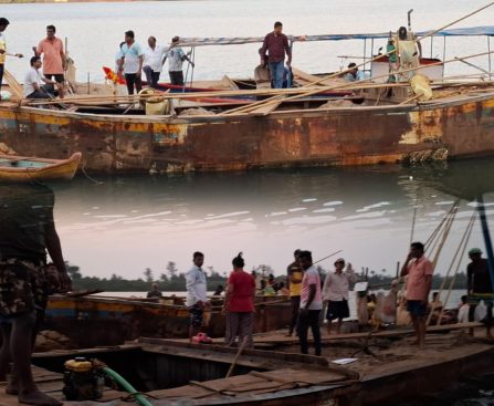 आचरा प्रतिनिधी बंदीभागात वाळू उपशा करणाऱ्या होड्या तळाशिल ग्रामस्थांनी पकडल्या तळाशील ग्रामस्थ आक्रमक; होडी मालकांसह, परप्रांतीय कामगारांवर गुन्हे दाखल करण्याची मागणी तोंडवळी तळाशील येथील , कालावल खाडीपात्रात बंदी असलेल्या भागात अनधिकृत वाळू उत्खनन करत असलेल्याच्या कारणावरून दोन होड्या ग्रामस्थांनी पकडून महसूल प्रशासनाच्या ताब्यात दिल्या. ही रविवारी सायंकाळी कालावलं खाडीपात्रात घडली. दरम्यान वाळू उत्खनन करणाऱ्या […]