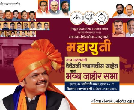 २८ जानेवारी रोजी मुख्यमंत्री देवेंद्र फडणवीस यांची कणकवली येथे जाहीर सभा १ फेब्रुवारी रोजी उपमुख्यमंत्री एकनाथ शिंदे यांची कुडाळ मध्ये सभा कणकवली (तुळशीदास कुडतरकर) सिंधुदुर्गात ५ फेब्रुवारीला जि.प. व पं.स. निवडणुका होऊ घातलेल्या आहेत. जिल्ह्यात खासदार नारायण राणे यांच्या नेतृत्वाखाली शिवसेना – भाजप – राष्ट्रवादी काँग्रेस महायुतीच्या माध्यमातून ही निवडणूक लढवली जात […]